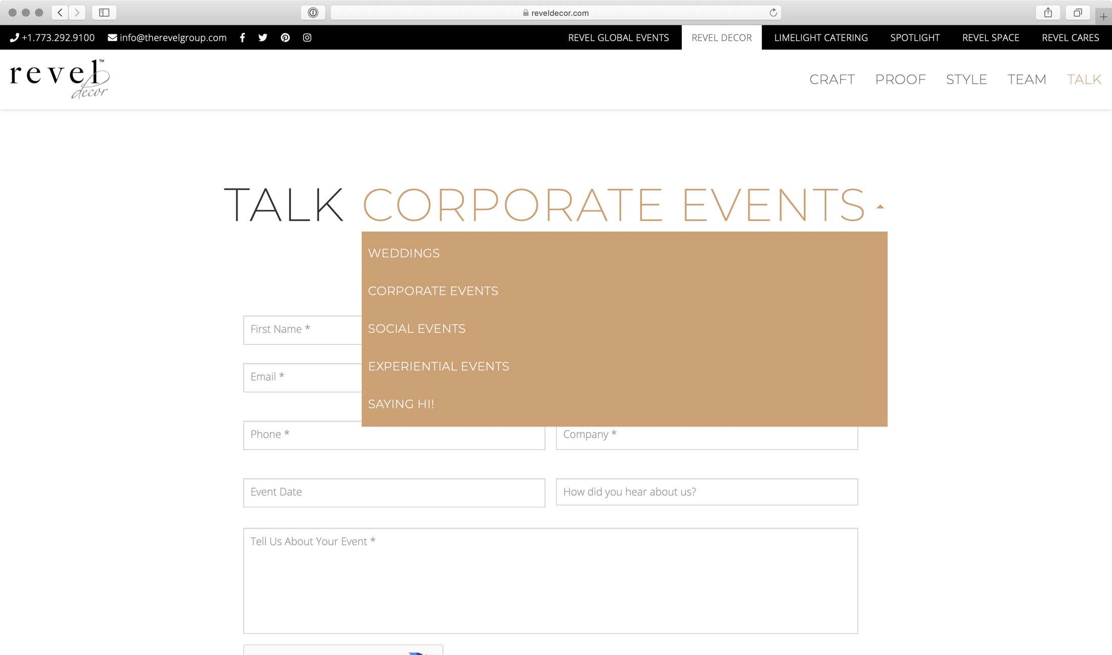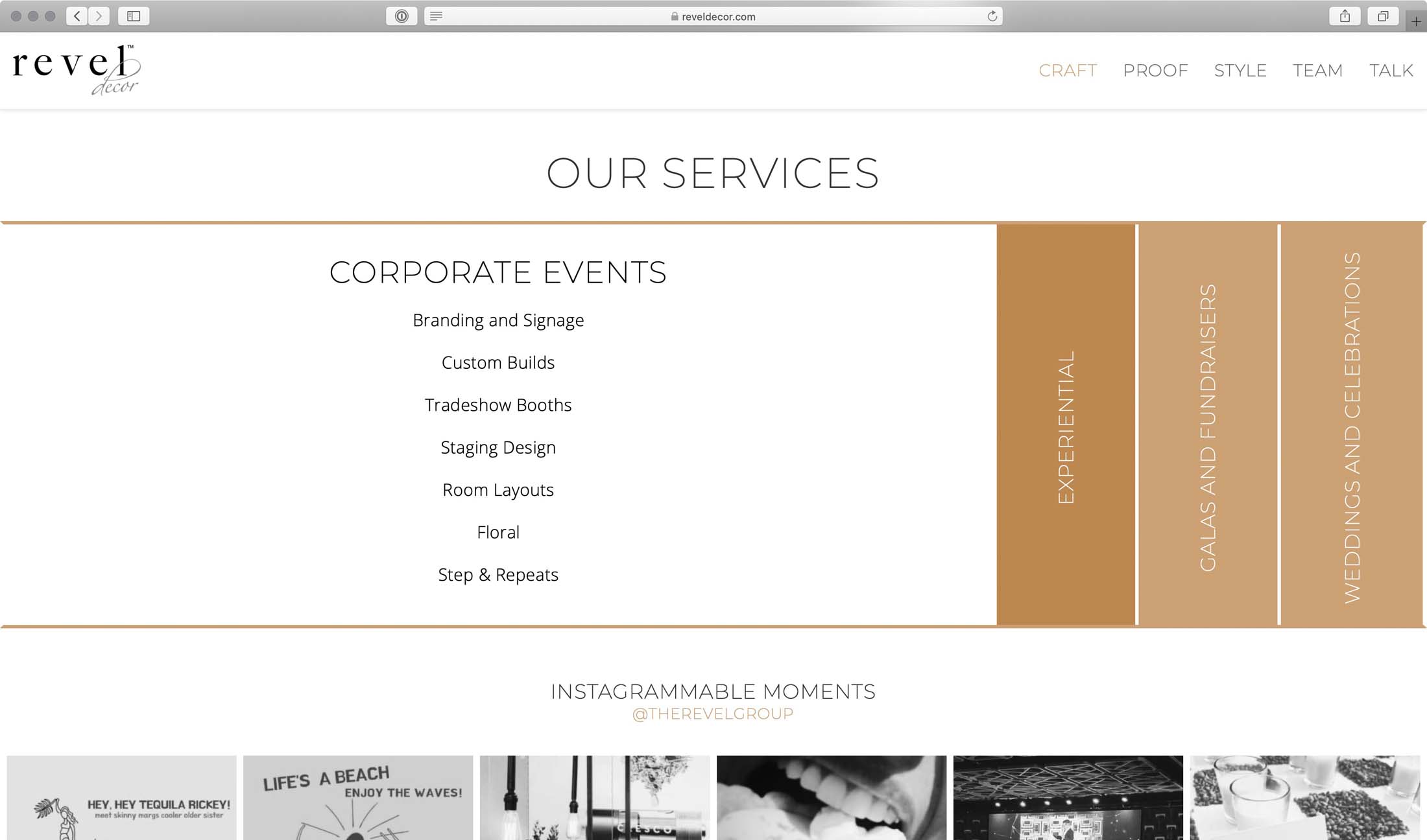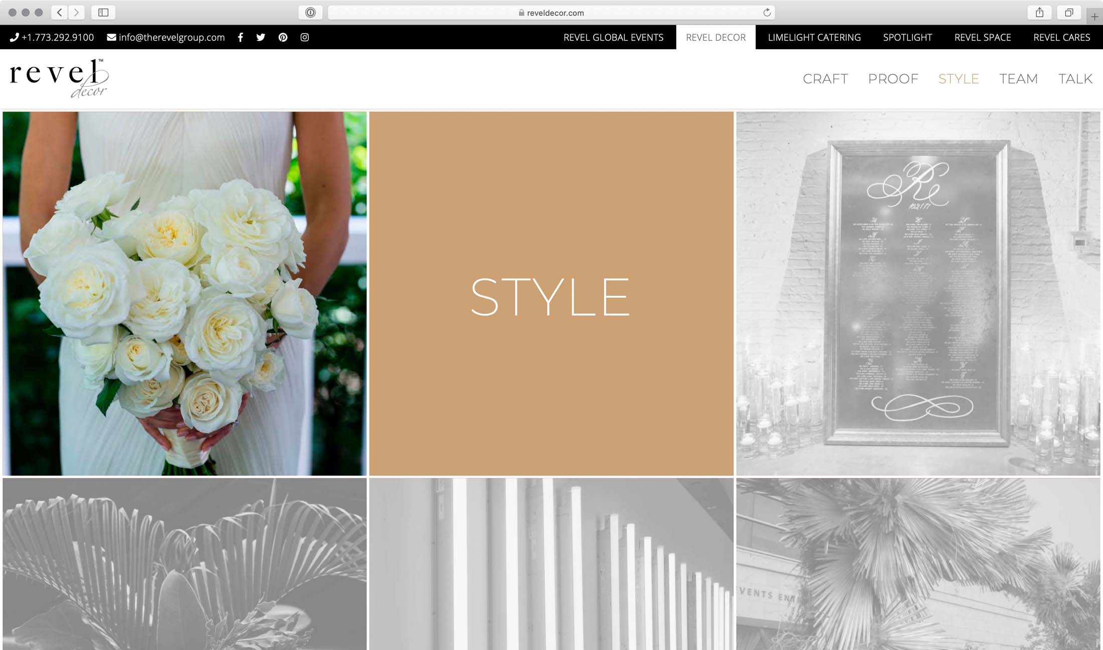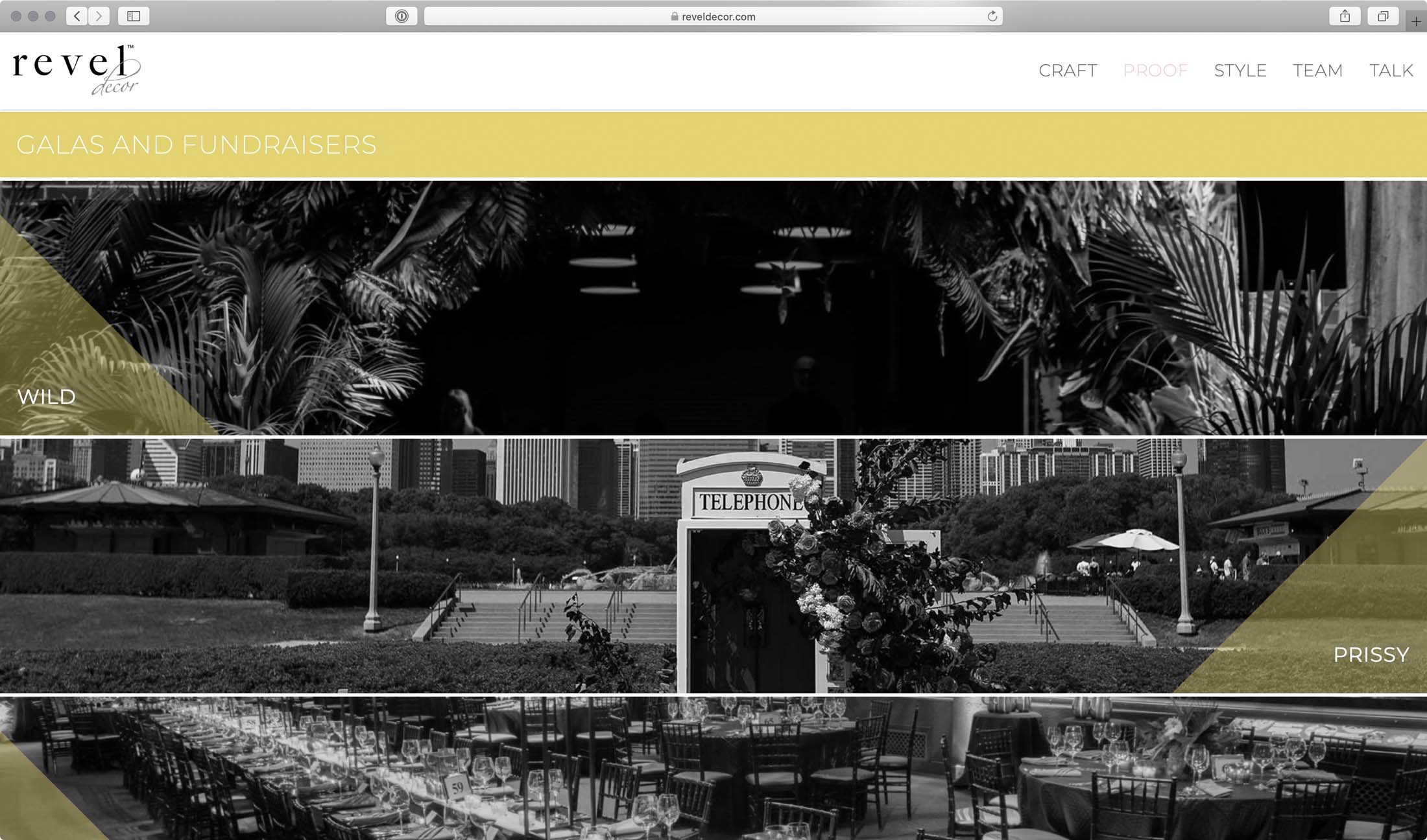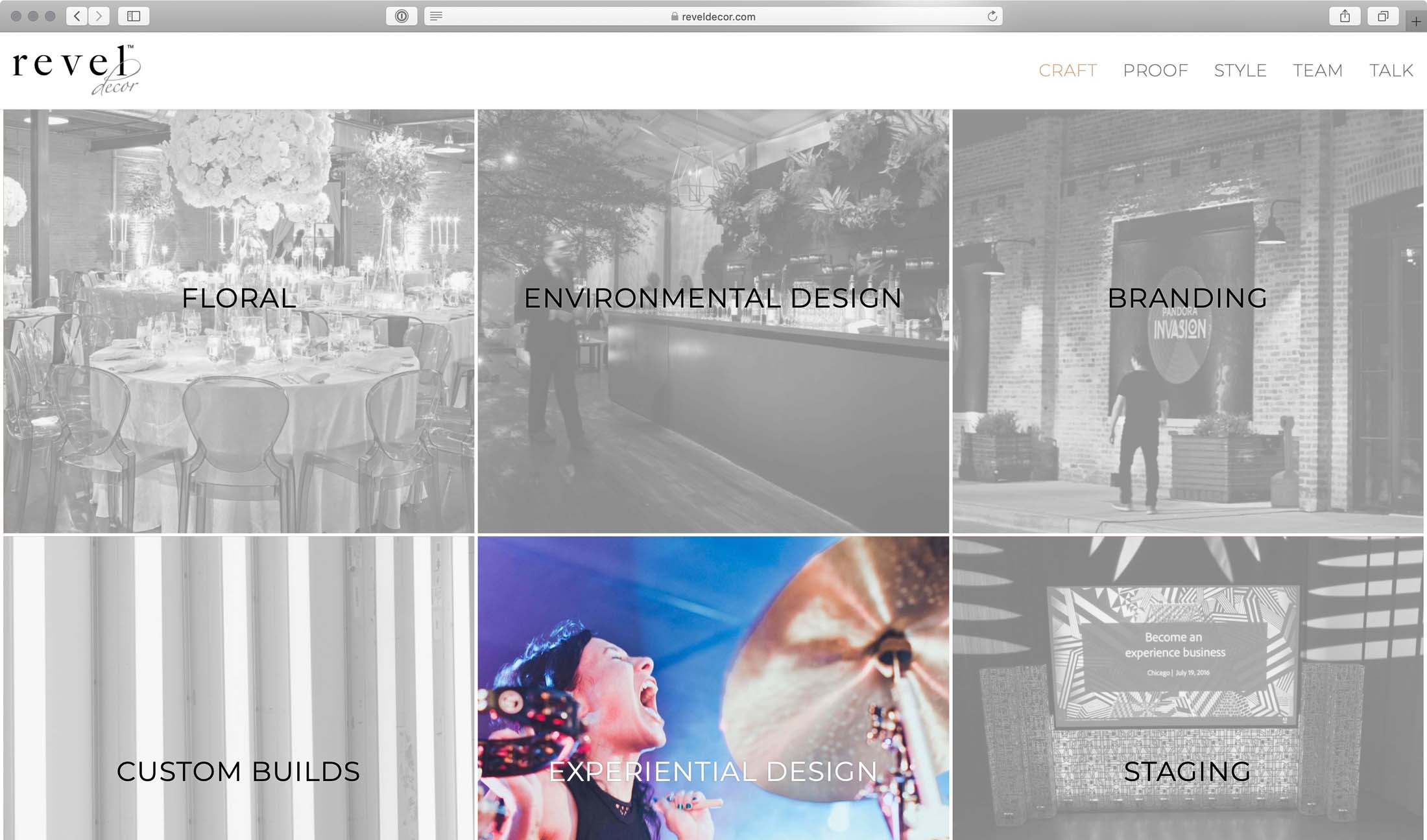 Web design and development project for The Revel Group’s Event Decor brand. Featuring a playful aesthetic with some subtle, and some more pronounced animations as users browse this site.