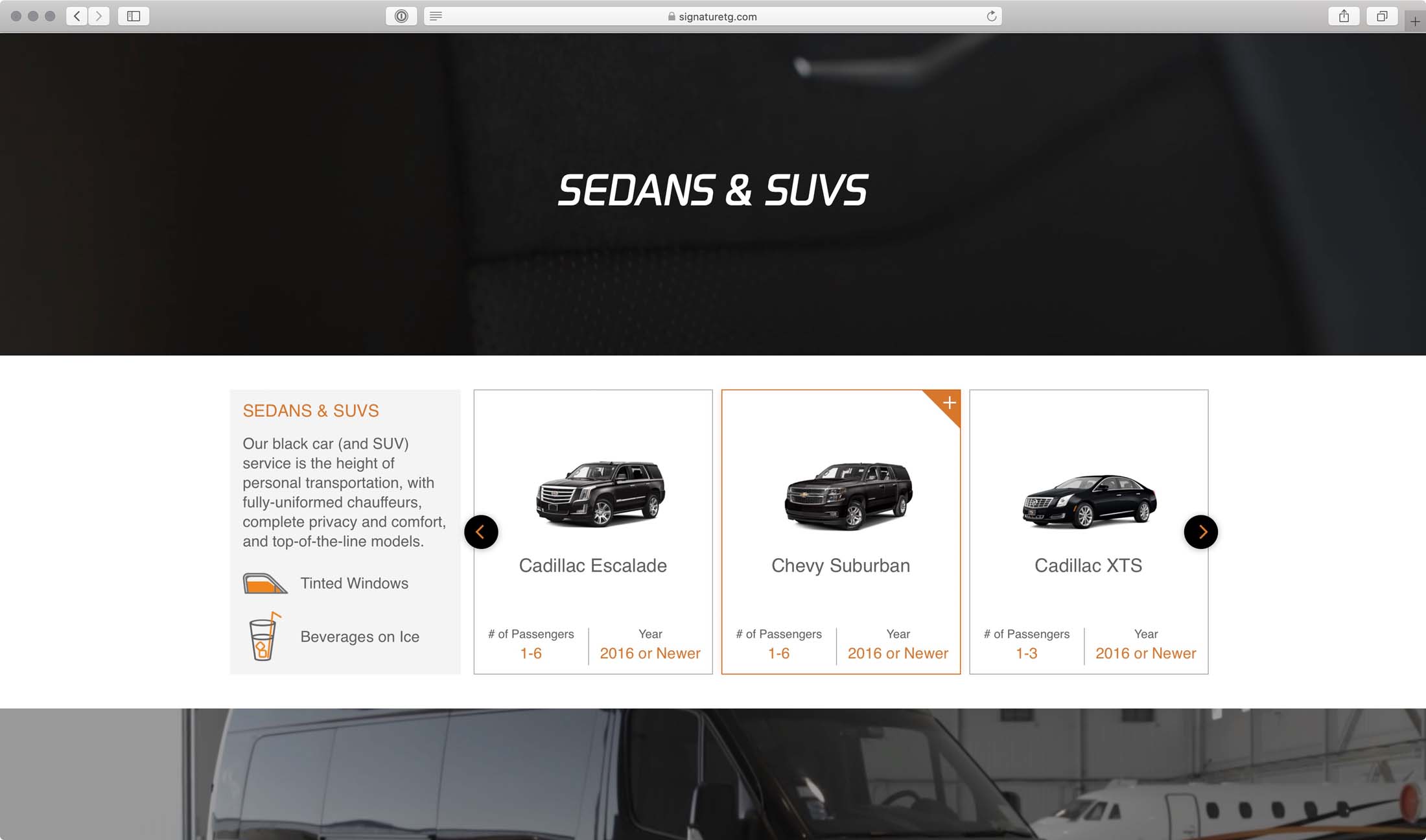 Development of a sales tool website for this national luxury transportation company. Website features detailed information about their fleet in a clean and interesting way. We included many slight animations throughout to give movement to the browsing experience.